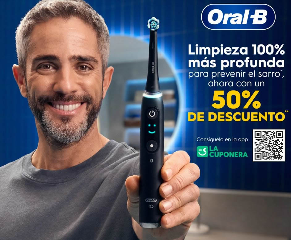 Consigue 50% de descuento adicional sobre el valor final pagado en la compra de cepillos iO y/o recambios.